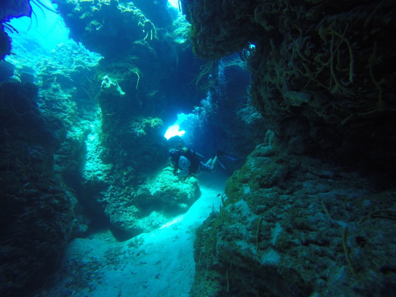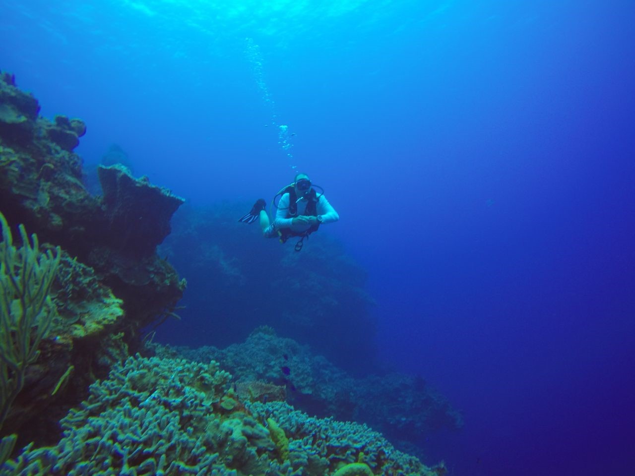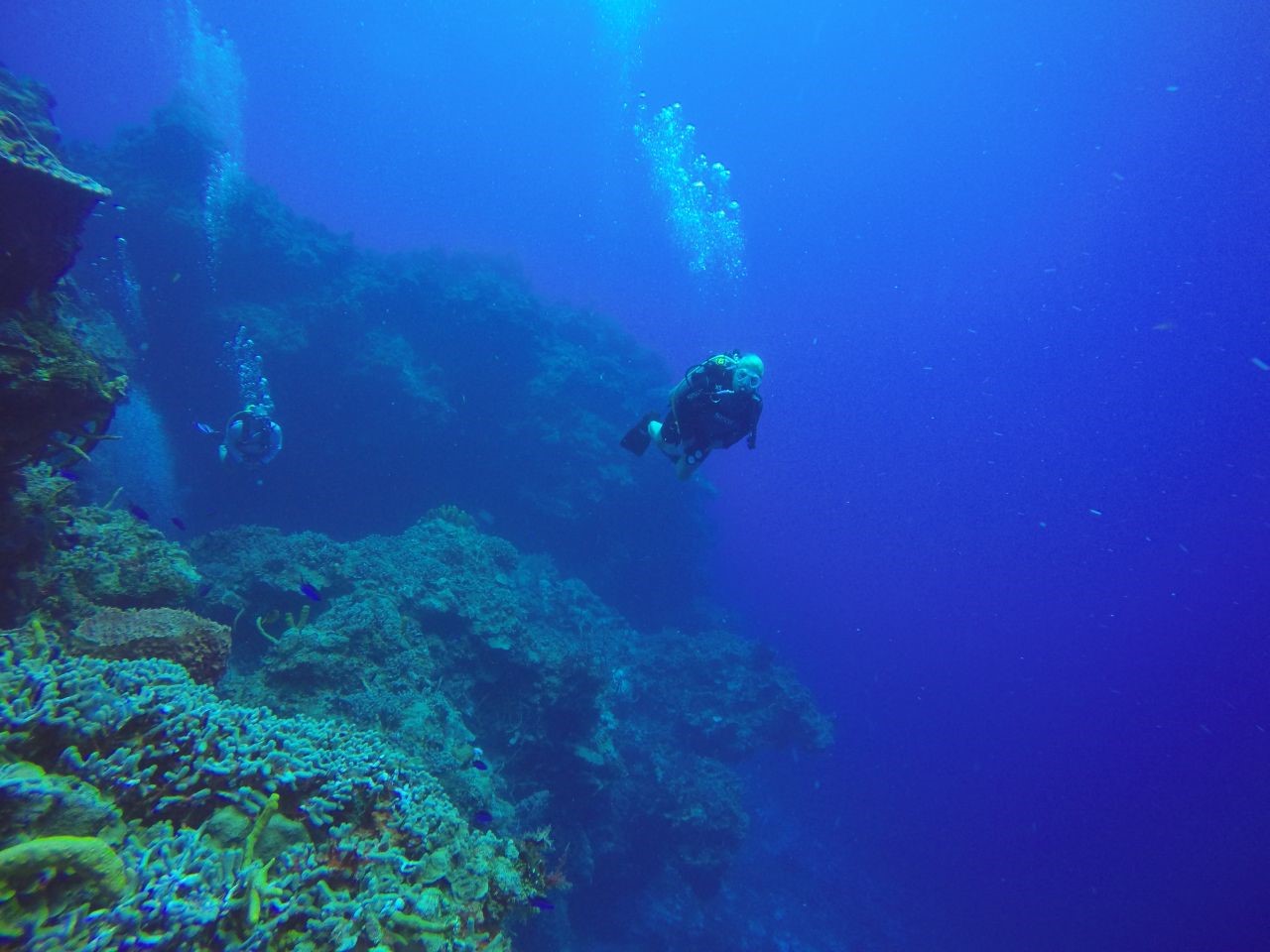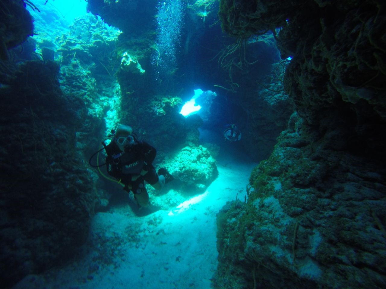 Anmerkungen: Pam ist bereit zu tauchen, sie hat tatsächlich den Tauchplatz ausgewählt, und sobald wir absteigen, wartete dieser schöne Durchgang auf uns, er öffnete sich weit und schön, die ersten Meeresschildkröten zeigen sich und es ist Zeit, ein Foto zu machen, schön !, tiefblau auf der einen Seite die riesige Korallenformation auf der anderen, auch gut für ein Foto mit Brian, langes und schönes Durchschwimmen zum Abschluss des Tauchgangs über die Sandfläche, wo sich der Stachelrochen zeigt, einfach genial!