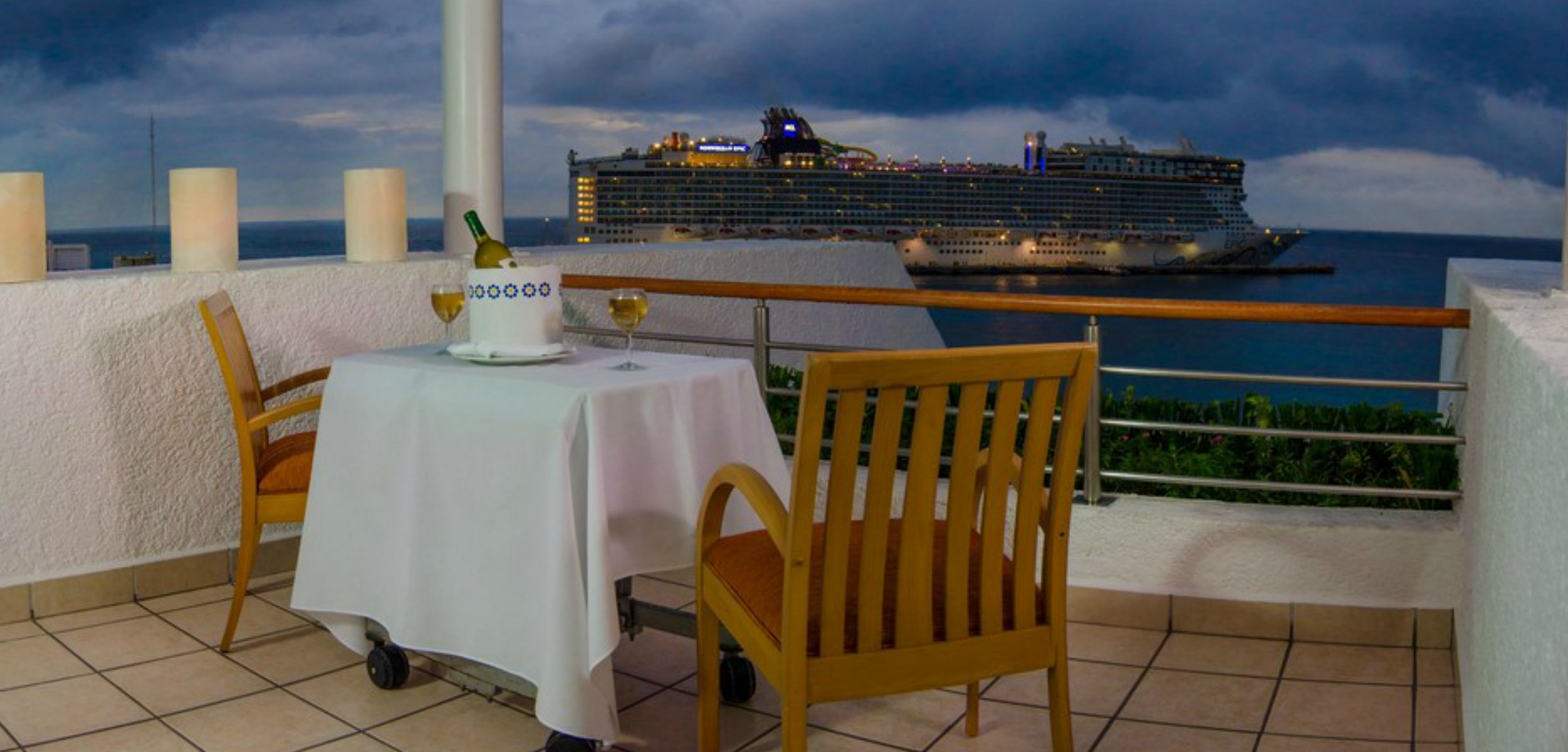 Casa Mexicana is located directly across the street from our pier pick-up location. Just steps outside your Cozumel dive resort you can step onto our boat and get whisked away to the incredible reefs of Cozumel. Photo as seen from balcony of ocean view room.
