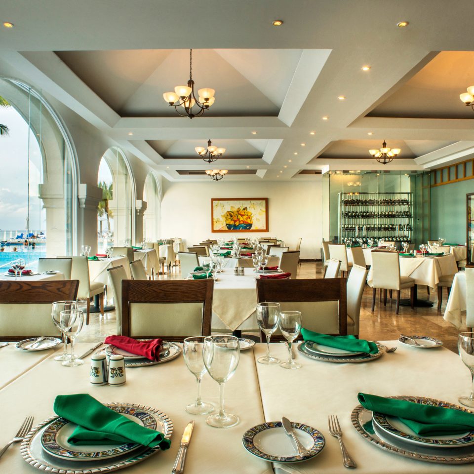 The Cozumel Palace all inclusive dive resort offers a wonderful selection of dining options. Four different resorts specializing in Italian, Asian, or Mexican cuisine. Dining is available both indoors with air conditioning, or outdoors taking in the Caribbean breezes. Turquesa begins breakfast service a 6:30am, ensuring you have plenty of time for a relaxing breakfast before our morning departure. This pool-side location also serves lunch and features Italian for dinner. Momo is their Asian restaurant, and Bugambilias their Mexican spot. Both are open only for dinner allowing less formal attire than Turquesa. With several restaurants to choose from and the 24 our room service, we promise you will put on weight this vacation.