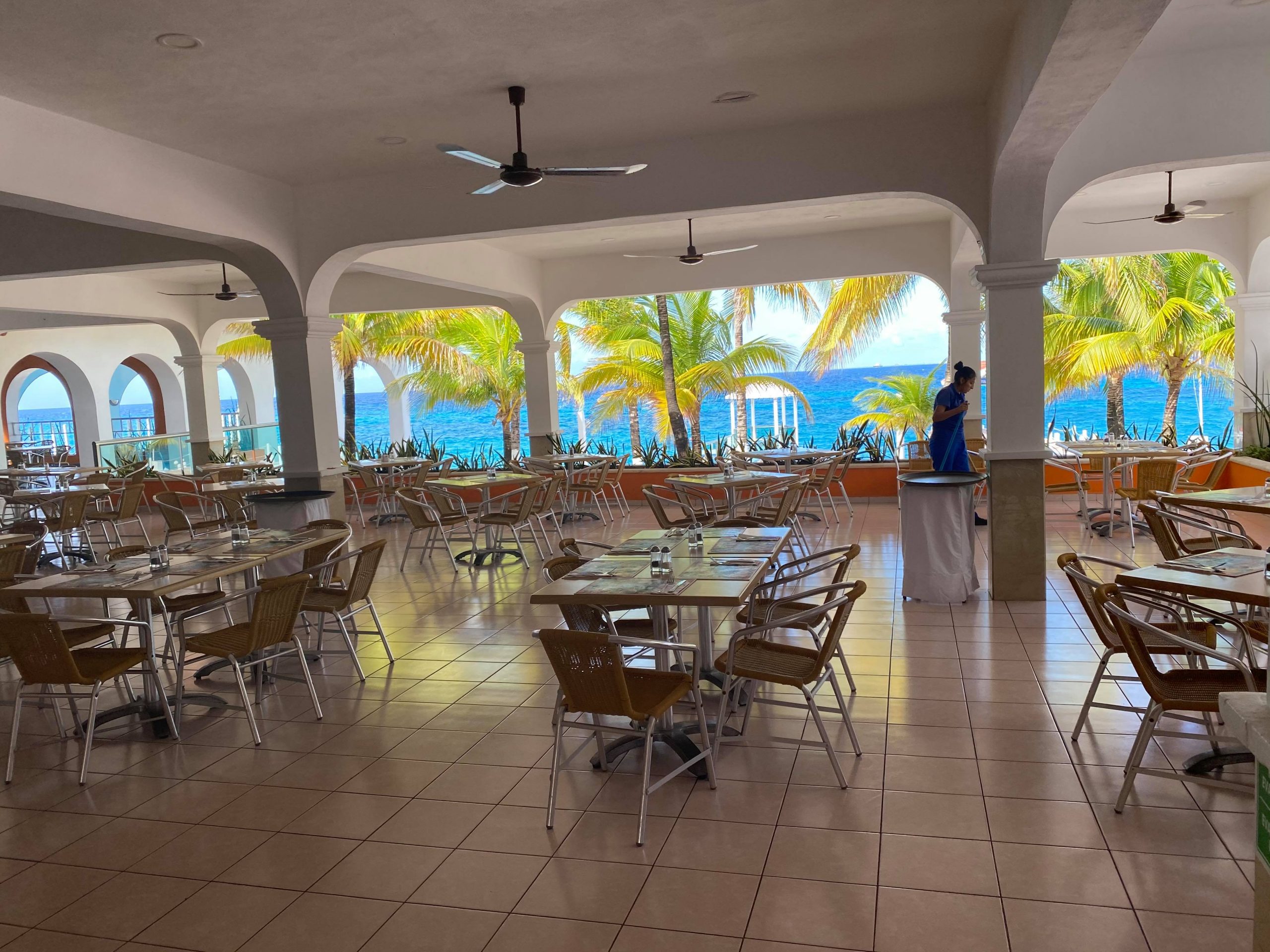 El desayuno del Hotel Cozumel & Resort se sirve en el restaurante Los Arcos, que se encuentra frente al vestíbulo principal. disponible a partir de las 6:30 am, lo que le brinda tiempo suficiente para un desayuno relajante antes de nuestra salida por la mañana. La misma ubicación también se utiliza para la cena a partir de las 6:30 pm, el desayuno y la cena son solo buffet. El almuerzo se sirve en su restaurante junto al mar Los Girasoles de 12 p.m. a 4 p.m., Nuevamente esto es una cena estilo buffet.